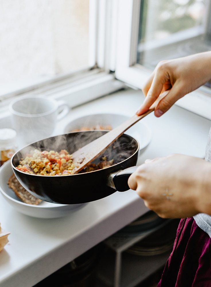 If you’re only cooking for yourself, I’ve found that it can be much more expensive than cooking for two, so stick to the basics and get creative. Plan out a menu for the week before you go shopping. One of my tricks to saving is sticking to the same meals with small twists every few days. The less variety I buy the less I waste and make use of those leftovers!