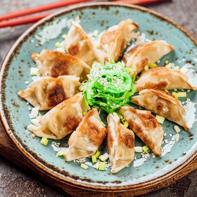 Juicy on the inside and golden brown on the outside, gyoza is a pan-fried Japanese dumpling.