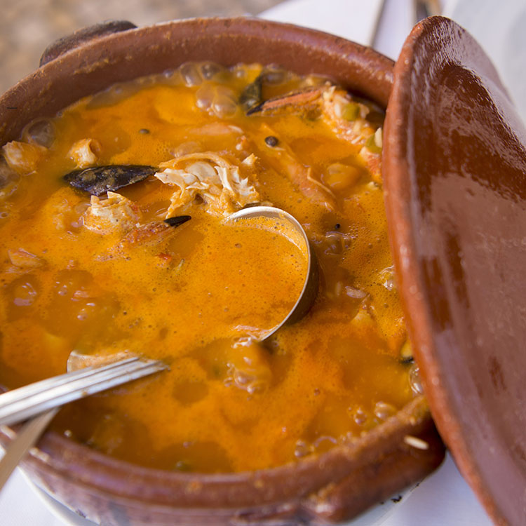 Arroz de marisco is a seafood rice that consists of shrimp, clams, mussels, lobster, crab, scallops, and rice. It’s very similar to Spanish paella, but can often have a stew-like quality.