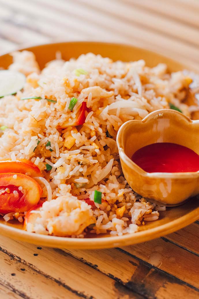 It differs from Chinese fried rice in that it uses Thai jasmine rice rather than regular long-grain rice.
