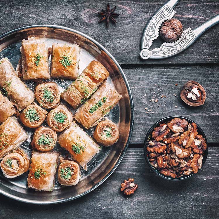 Flaky, crispy, tender, and oh-so-sweet, baklava is everything dessert is meant to be. In Turkey, making baklava is an art form and every artist has their own signature. You will find baklava with walnuts, pistachios, or hazelnuts and a range of sweet flavors like honey, rosewater, or orange flower.