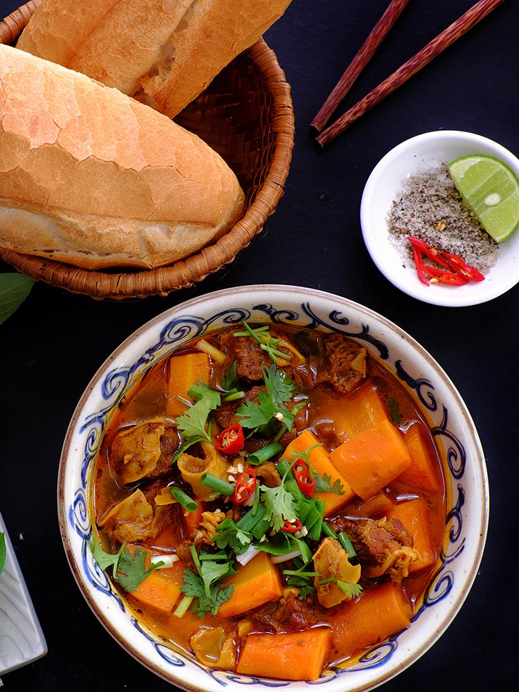 Pronounced “baw-khaw,” this dish is the Vietnamese version of the French boeuf bourguignon.
