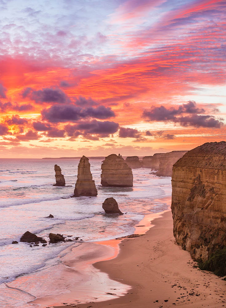 Just a few minutes away from the city center lies the 12 Apostles. These limestone stone stacks jut out from the ocean. Contrary to what their name might suggest, there have only ever been eight “apostles”. One collapsed in 2005, but you can still see the rest of them today!