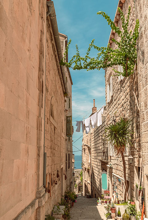 Just off the Dalmatian coast, you’ll find this island of thick forests, famous vineyards, and lines of olive groves.
