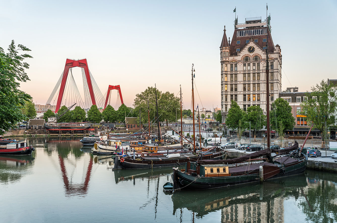 If you enjoy art, then definitely check out the Kunsthal Rotterdam. This striking glass and steel building hosts many art exhibitions with temporary art, design, and photography. From the Kunsthal, take a walk and cross the beautiful Erasmus Bridge that spans the Maas River, and end up in between the city’s highrise.