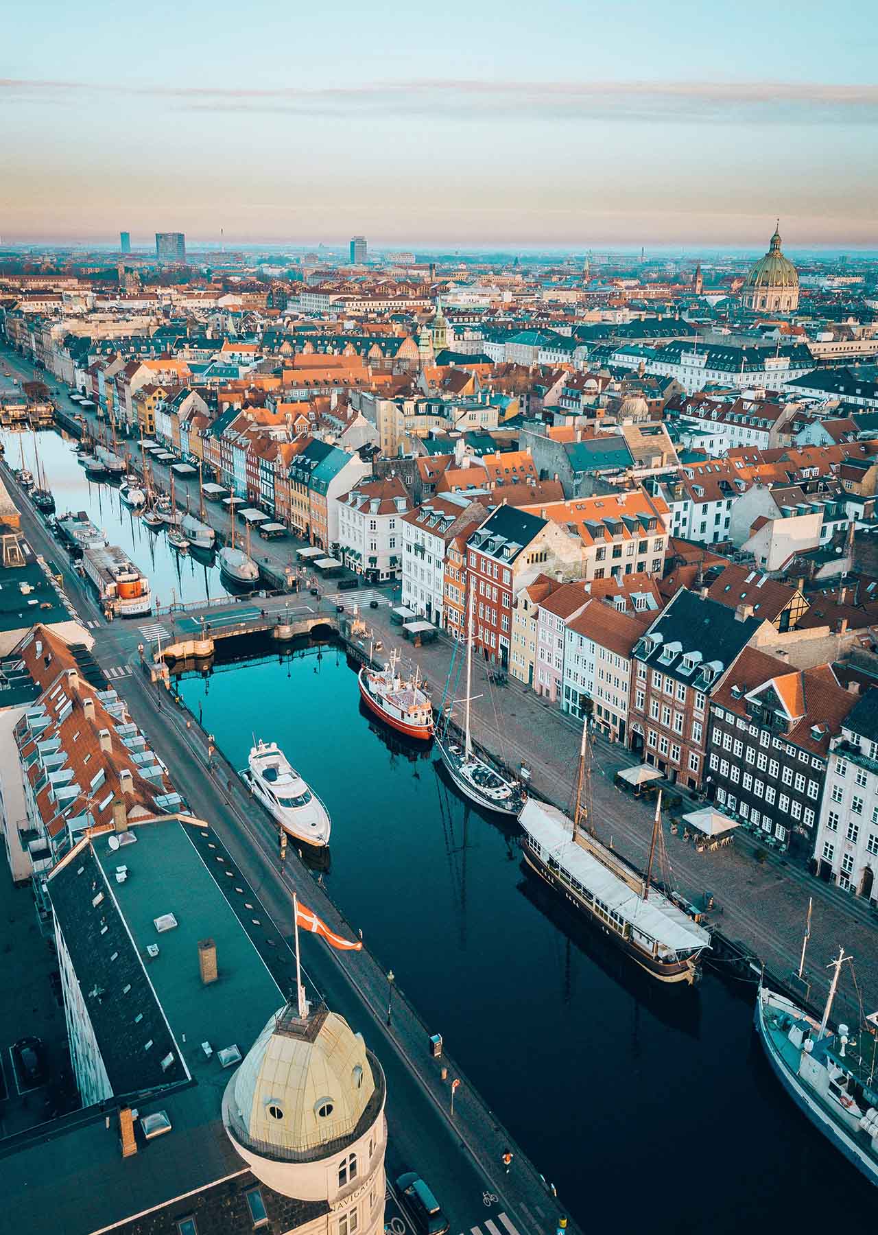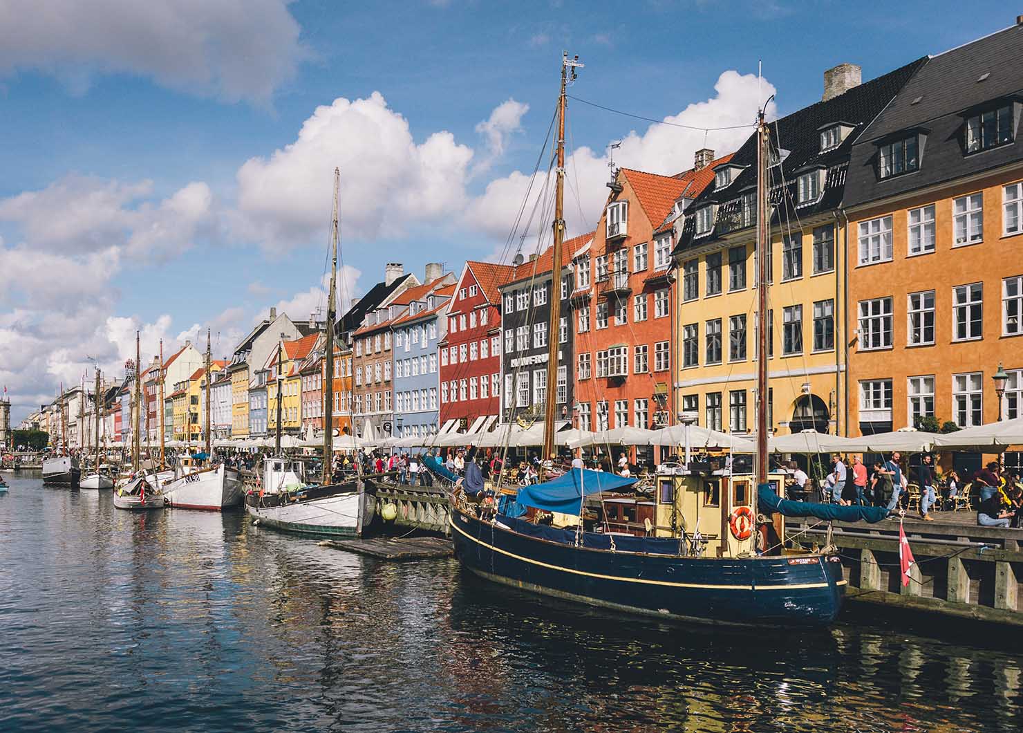 The Nyhavn harbor in Copenhagen is probably the most notable landmark in the city. This 17th-century harbor is lined with colorful townhouses and cafes.
