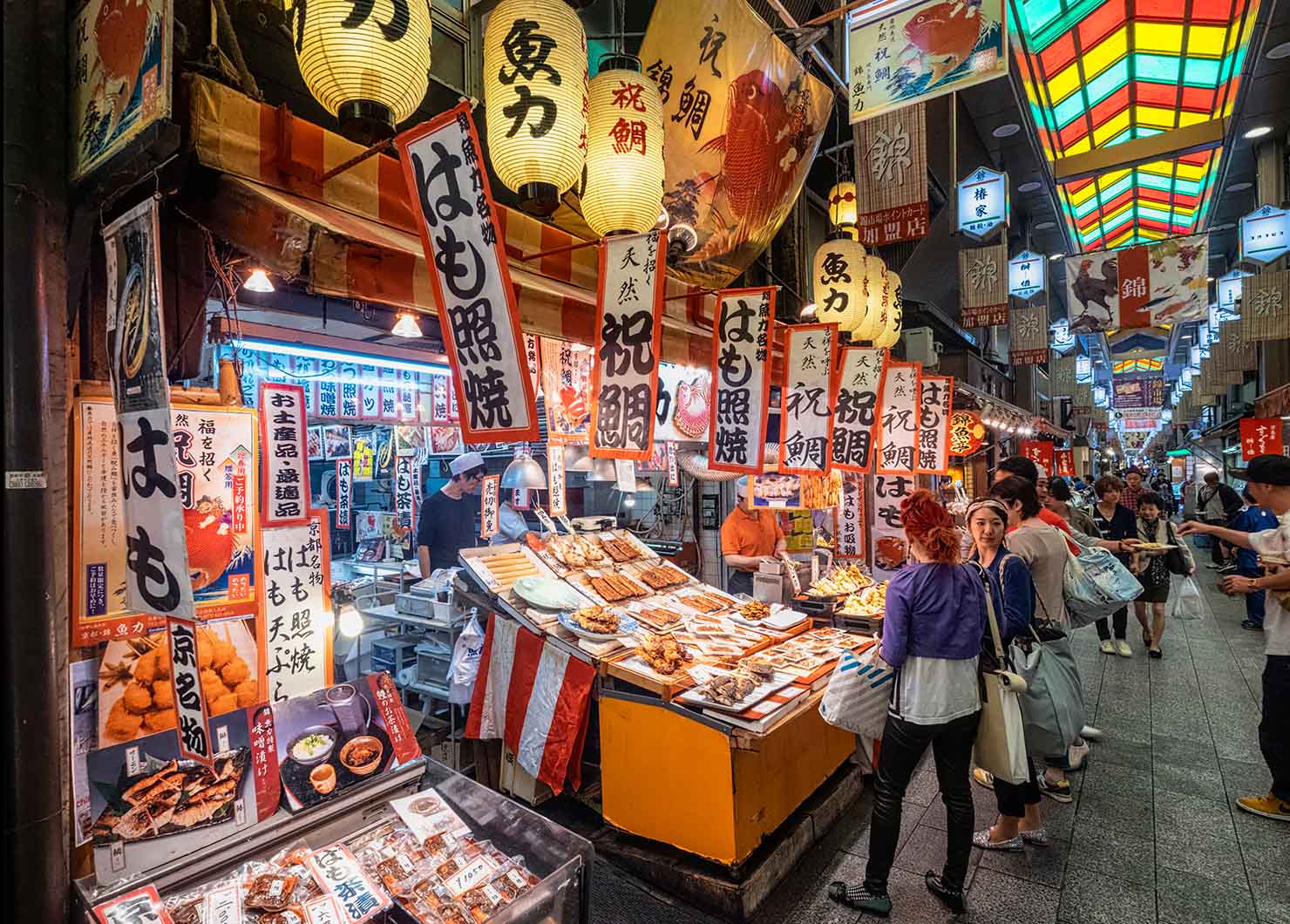 Foodies will love walking the five blocks of Nishiki Market. There are hundreds of shops and restaurants that have everything from fresh seafood, produce, sushi, Japanese sweets, and so much more.