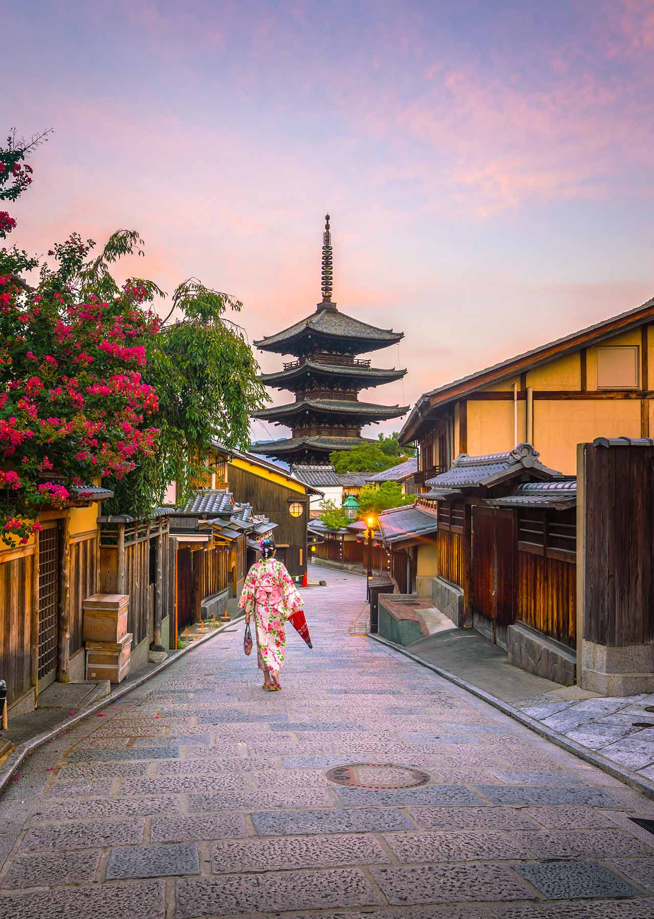 Sannenzaka may be one of the most scenic areas to see in Kyoto. The pedestrian streets are lined with traditional wooden homes and have several shops, cafes, and restaurants.