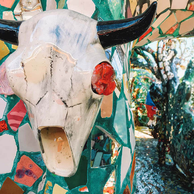 Explore the colorful tiles and gorgeous glass mosaics. If you’re lucky, you might even get a chance to chat with the owners of this wonderland.