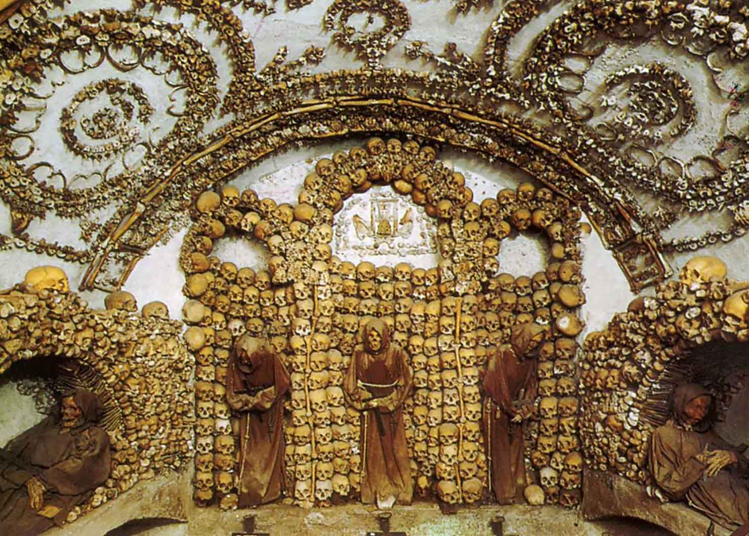 The monks, rather than burying the remains of their passed brethren, decided to decorate the walls of the crypts with their bones as a way to remind them that death would eventually come to all.