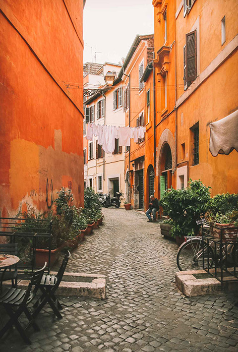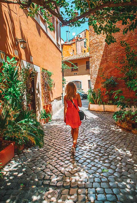 Cross over the Tiber River to explore Trastevere, which means beyond the Tiber in Italian. This one-time working-class neighborhood is home to some of the most stunning streets in Rome.