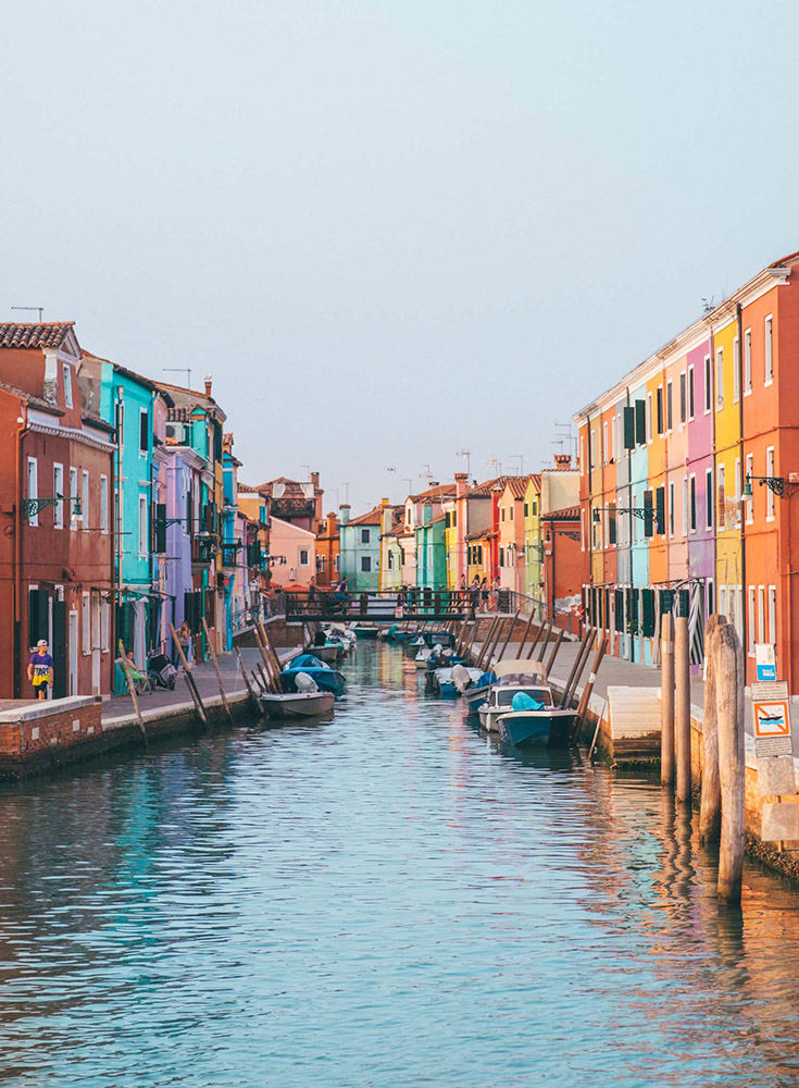 The island of Burano is known for its bright colorful buildings and vibrant art scene.