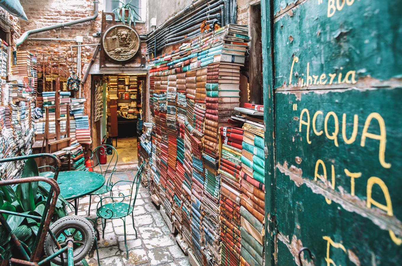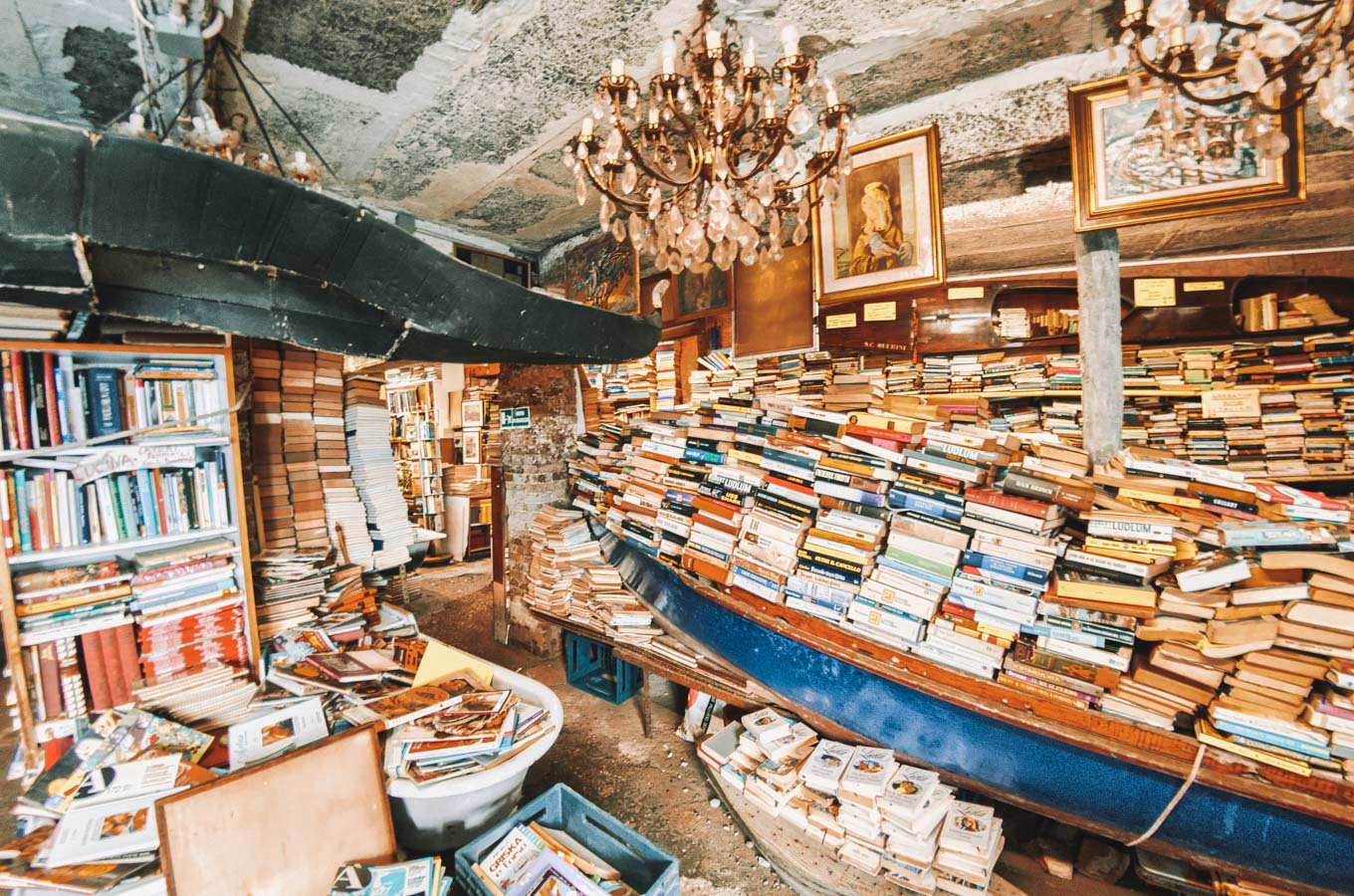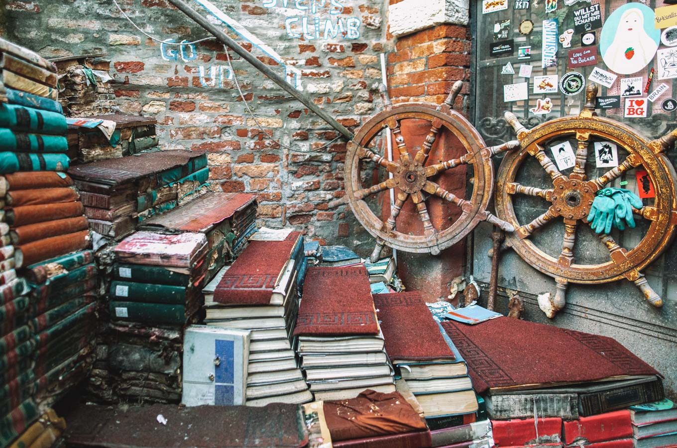 Its layout is beautiful and chaotic and you can spend hours sifting through the stacks of used and new books which you can find not only on shelves but also in antique gondolas, barrels, and bathtubs.