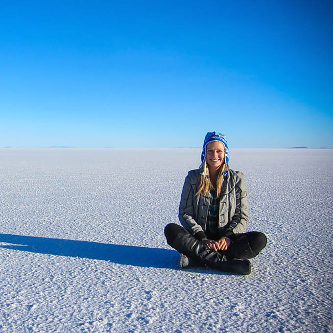 On a 4-day Uyuni Salt Flats tour through Bolivia, you can see everything from pink flamingos to blue lagoons. On your final morning, you arrive at the salt flats before sunrise where white stretches as far as the eye can see. It’s a magical place!