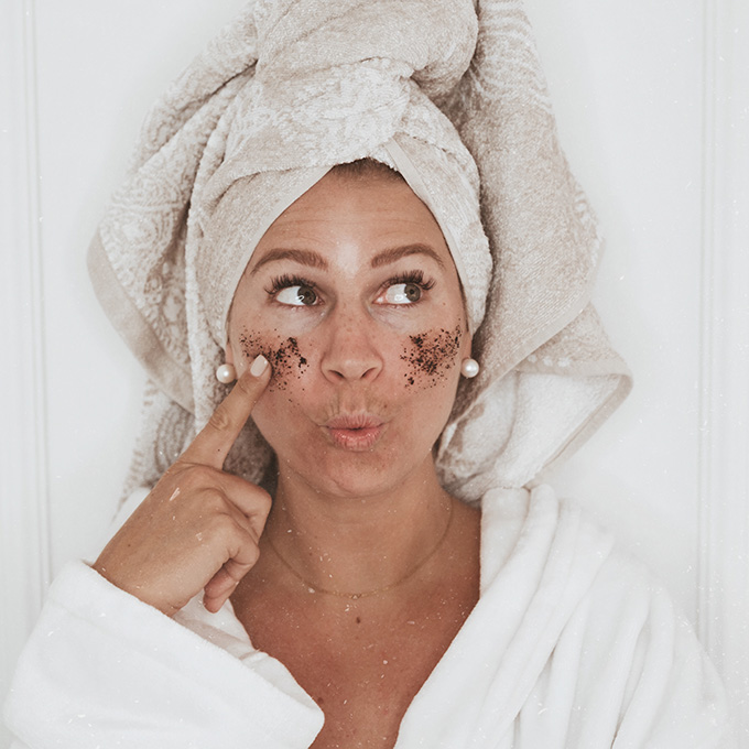 Regularly exfoliating your face and body helps shed dead skin and will make your moisturizers work better. The less dead skin, the easier it is for your moisturizer to absorb and to help keep your skin healthy. I love this body scrub and use it once a week!