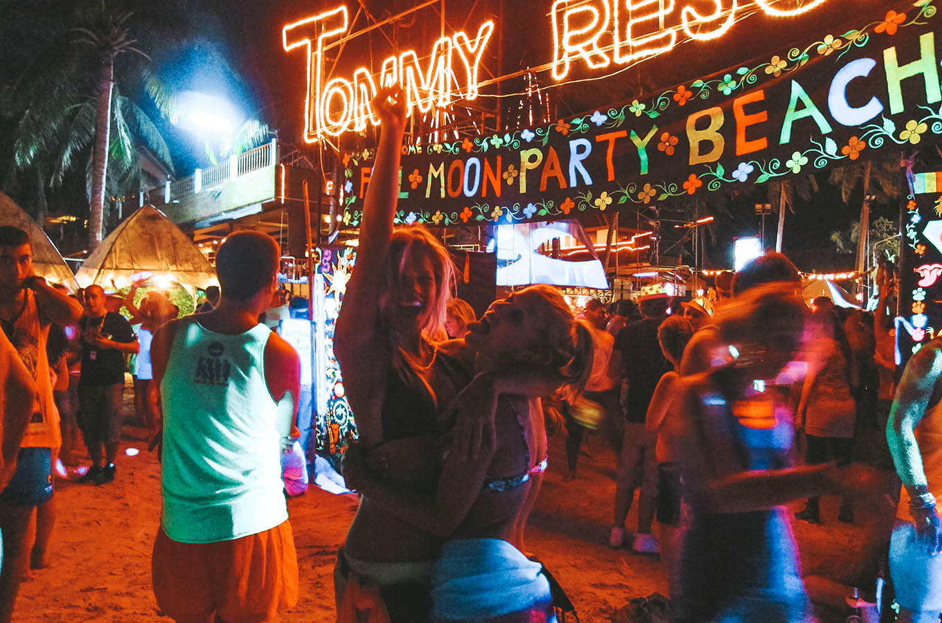 The massive party takes place on a stretch of beach on Koh Pha Ngan (Koh Phangan) island in Thailand.
