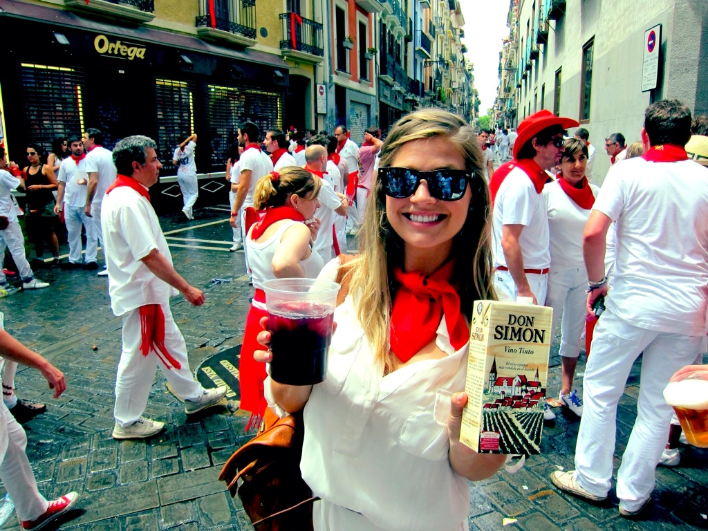 The Running of the Bulls takes place on the second day of the festival, and many people party through the previous night and come for the run still stained in sangria. The streets are cleaned as best as possible while thousands of people begin to fill the streets and balconies along the route of the run.