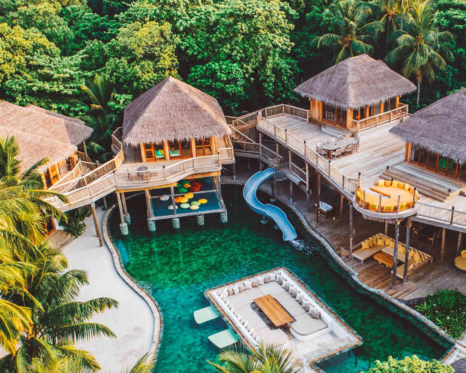 The luxurious villas are hidden among dense forest, and each suite opens up to their own private white sand beach. But besides the hotel’s luxurious amenities, it also boasts the largest solar plant on the islands and all its food is grown and locally sourced.