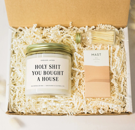 When in doubt, head to Etsy! You are sure to find unique and thoughtful housewarming gifts of all kinds. I’ve bought funny and cute candles from here countless times.
