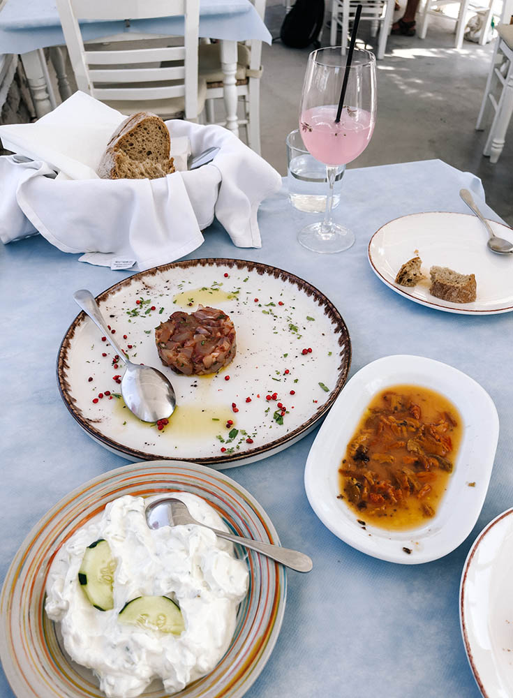 As a general note, a lot of places on Milos are first-come-first-serve. That’s not to say places won’t take reservations — there certainly are ones that you can book well in advance, and if you’re able to do so, I would highly recommend doing so.