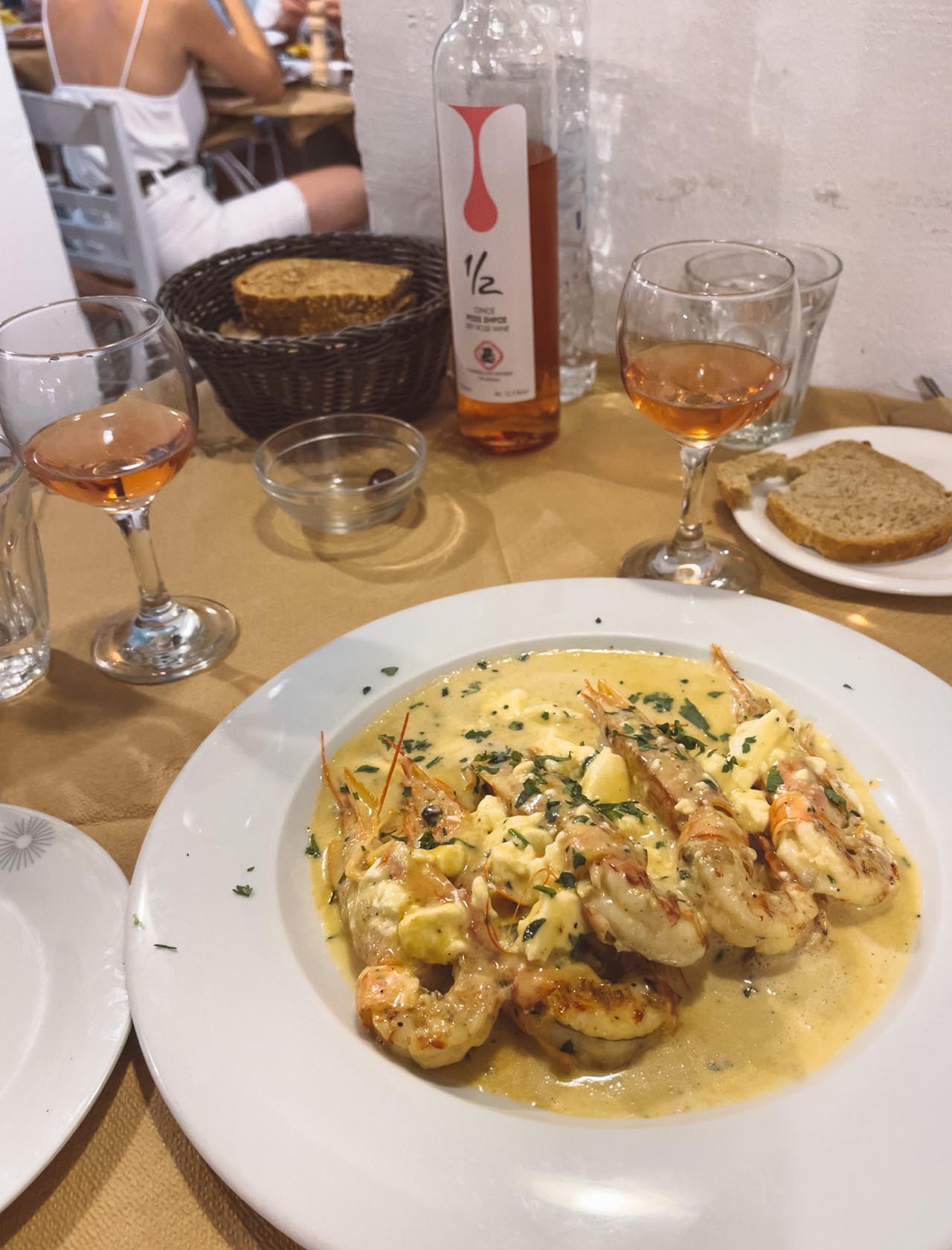 Whenever you go, try the seafood! I had the sea urchin dish and that famous shrimp saganaki, and it was easily one of my favorite meals of the trip (which is saying a lot in Greece).