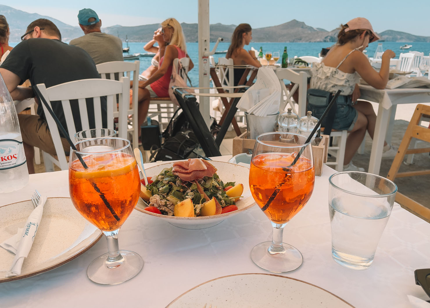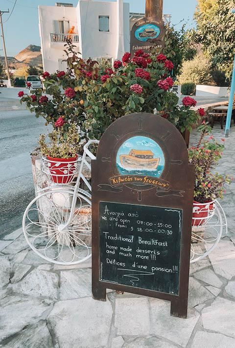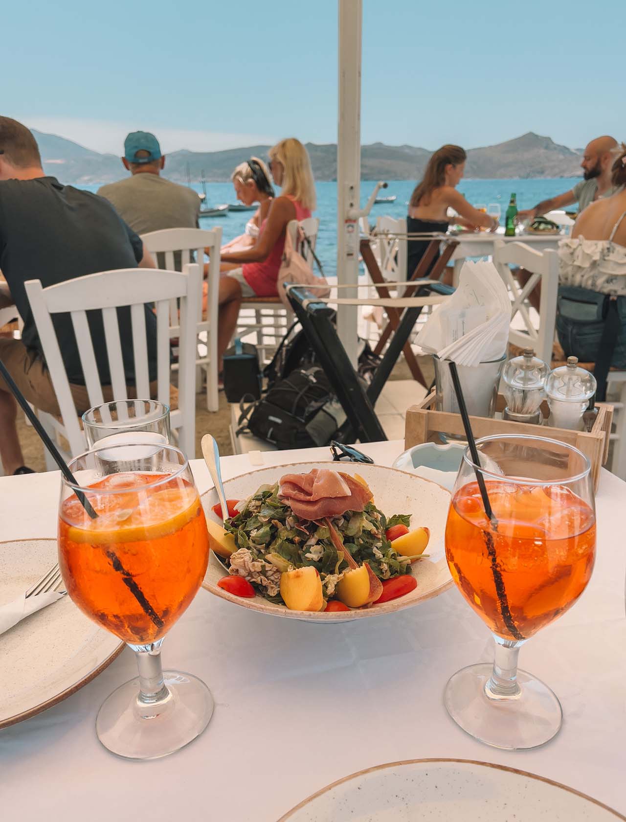 Pollonia is a top spot to eat and, it’s a particularly good place to start your day. It’s just near the port and many sailing excursions leave from here. On the day of our trip, we had a lovely breakfast stop just before we set sail.
