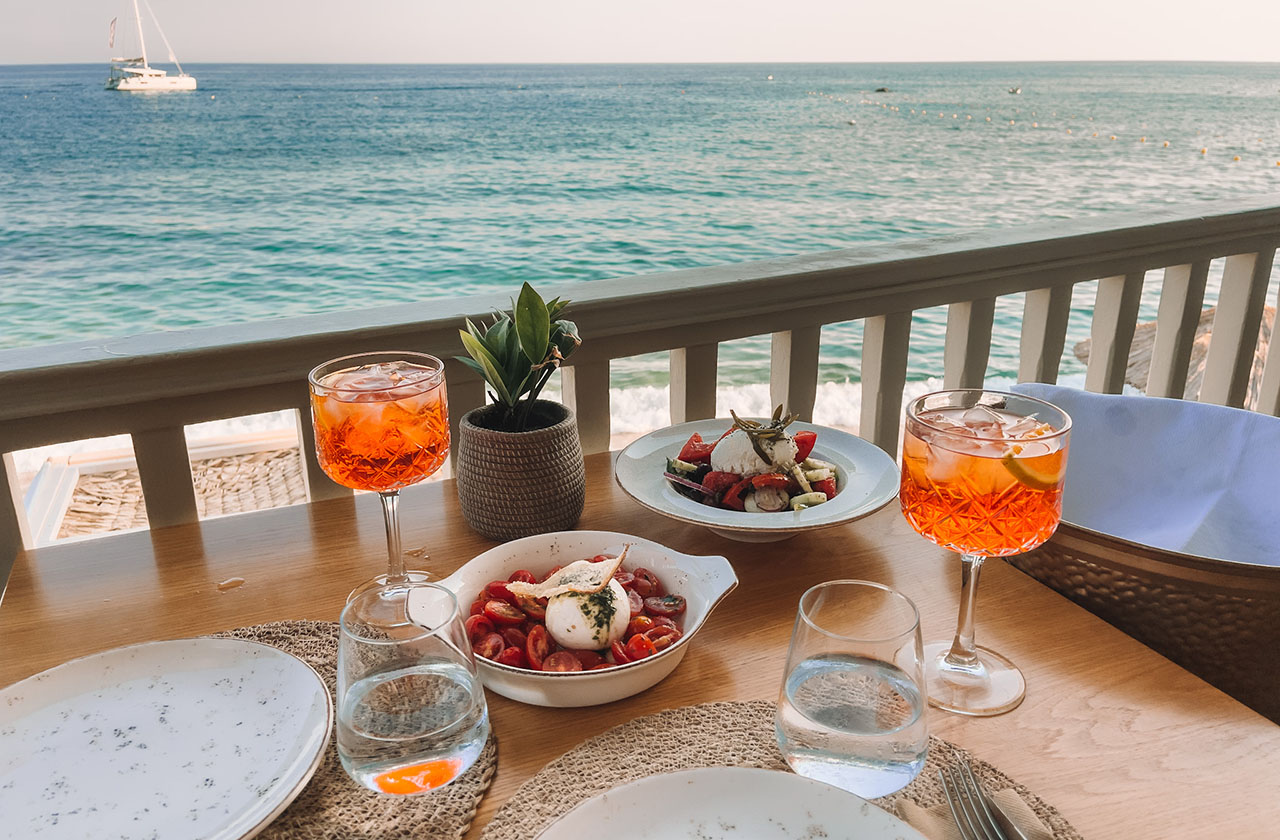 In the meantime, we sipped on Aperol spritz and lounged on the beach. We arrived 30 minutes before sunset so we had a prime view and enjoyed lingering over the long dinner.