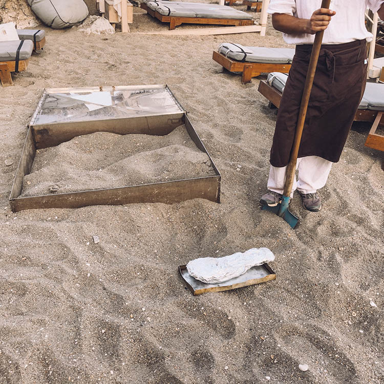 To prepare your meal, they dig a hole on the beach and then bury your fish.