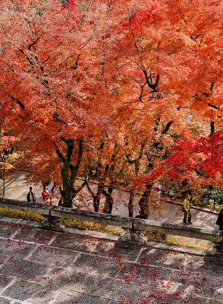 Once the summer warmth fades, Japan is covered with colorful autumnal hues. These leaves draw almost as many travelers as the cherry blossoms do. In fact, viewing the leaves has been a popular activity for centuries. The best places to spot the fall foliage are at parks, temples, and the mountains.