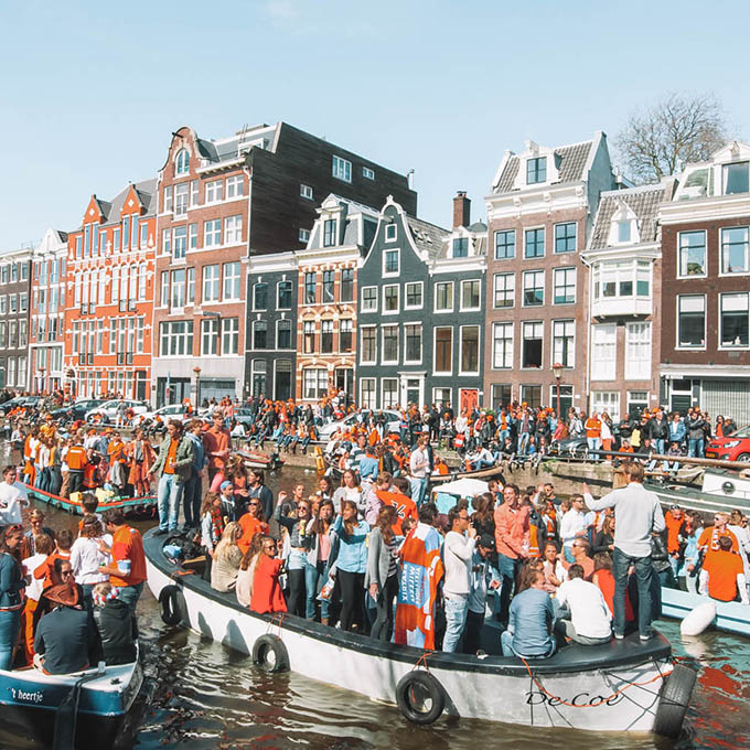 The beginning of April can be met with a rollercoaster ride of temps. One minute it is hot and the next you’ll find yourself bundled up begging for hot chocolate. Luckily, things warm up towards the end of the month. This is the perfect time for King’s Day—a public holiday held on the 27th. The locals celebrate with music festivals, canal parades, and fabulous open-air markets.