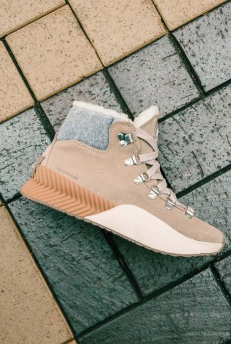 These Sorel Ainsley Conquest boots are sold out in this color online, but the Sorel Hi-Line Lace-Up Cozy Hiker Booties in Canoe are similar!