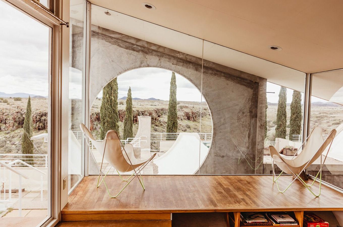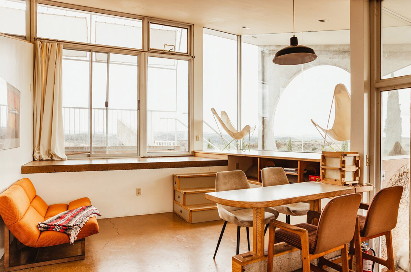 What a cool place! The Sky Suite is located in the communal environment of Arcosanti, a place that offers incredible views of the high desert and also serves as an amphitheater. The cozy space is filled with light and is simply a magical place to stay.