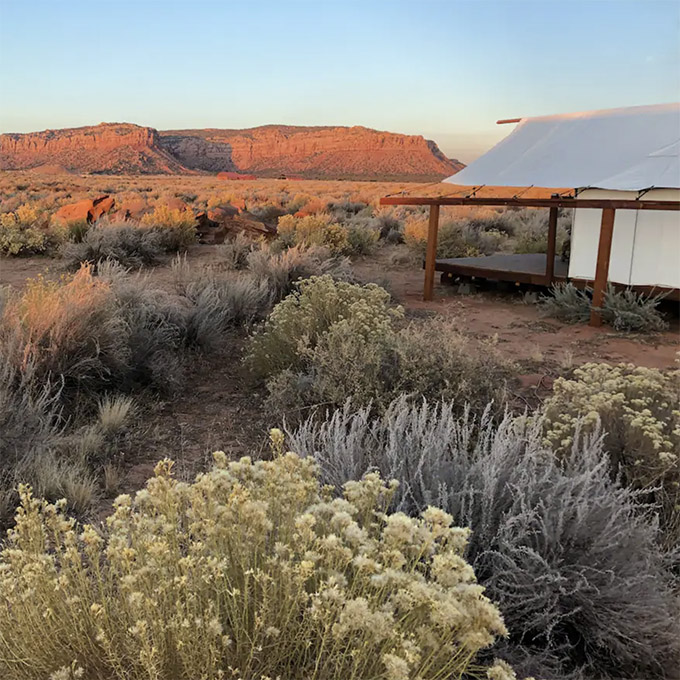 This luxury glamping tent near Coral Pink Sand Dunes State Park is an excellent base for those that want to explore Zion, Bryce Canyon, or the Grand Canyon. This area is known for its beautiful sandstone formations and perfect for outdoor lovers.