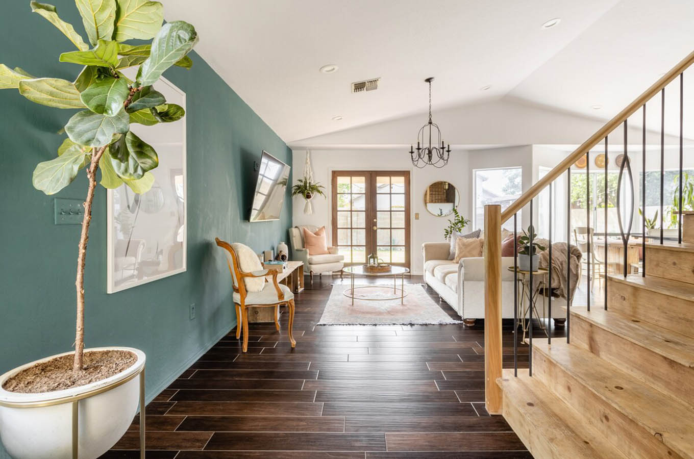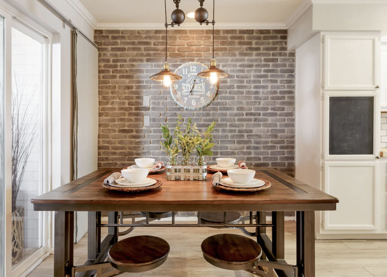 Embrace all the modern meets vintage charm of this 1950’s Mid-Century condo in Old Town! I’m a big fan of the rustic accents, like the old-world brick and reclaimed pallet wood walls.