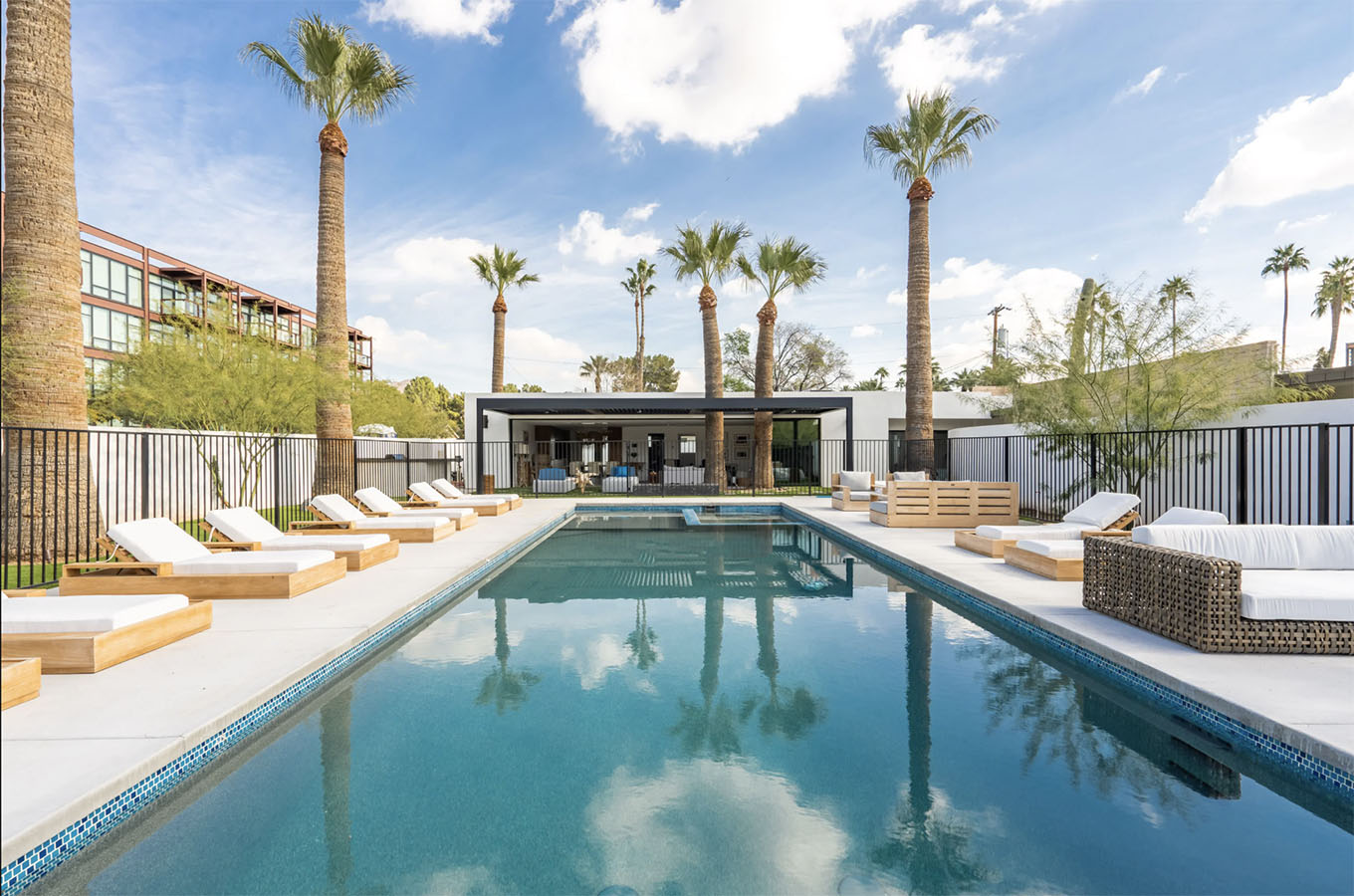 Scottsdale’s secret sanctuary, The Brexley, can fit up to 10 guests and is a haven of serenity. With a stunning backyard area and pool, along with the minimal and cool decor, this place is perfect for those that want to unwind in comfort.