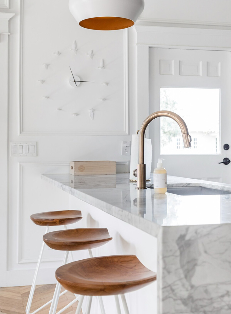 For guests that love to cook, this kitchen is crisp and beautiful with marble counters and a bar-style table with leather stools. Outfitted with Mid-Century furnishings and cool touches, this place is chic and created with the design-savvy in mind.