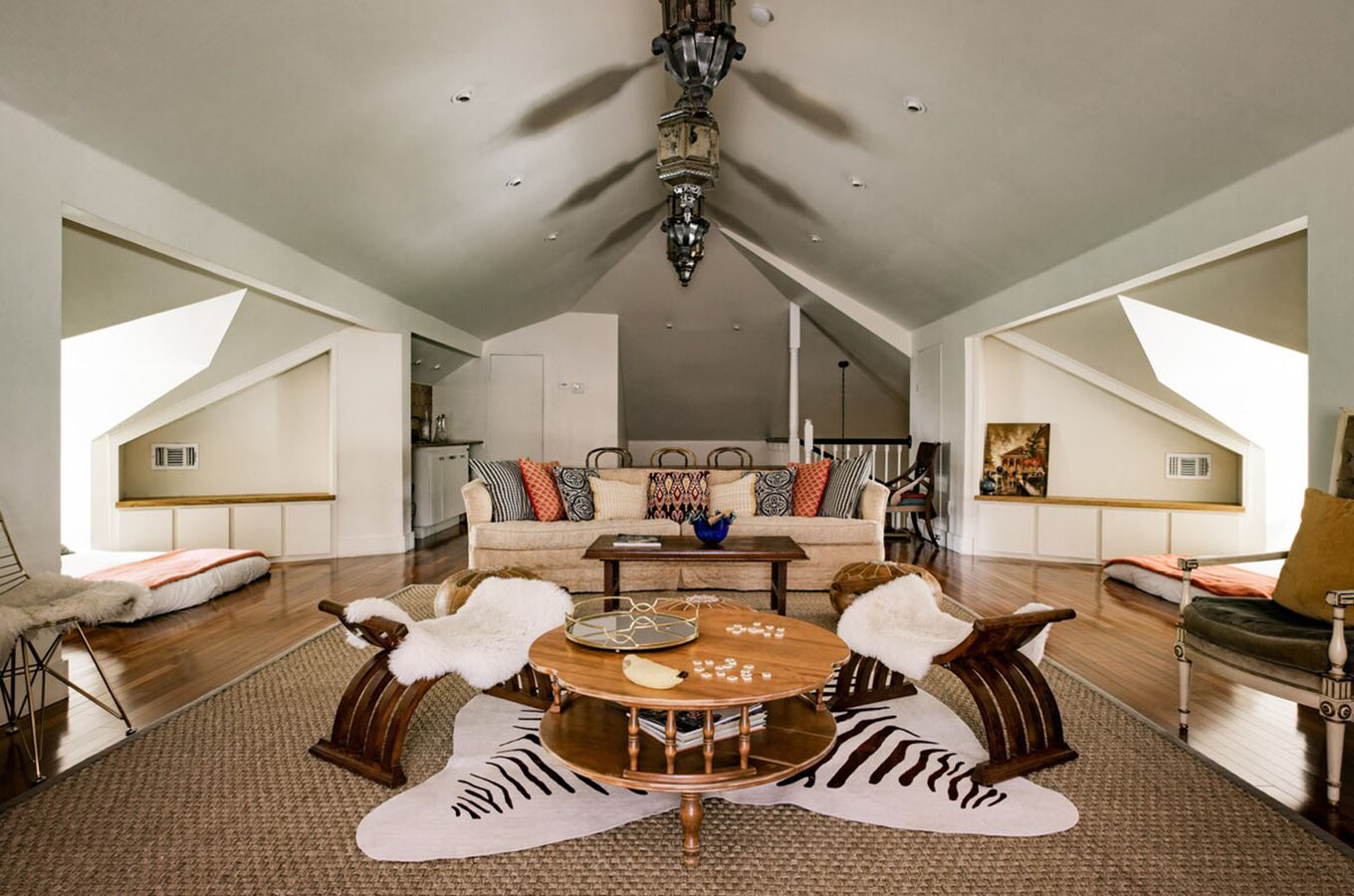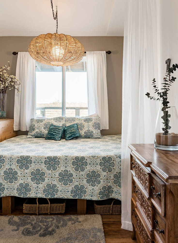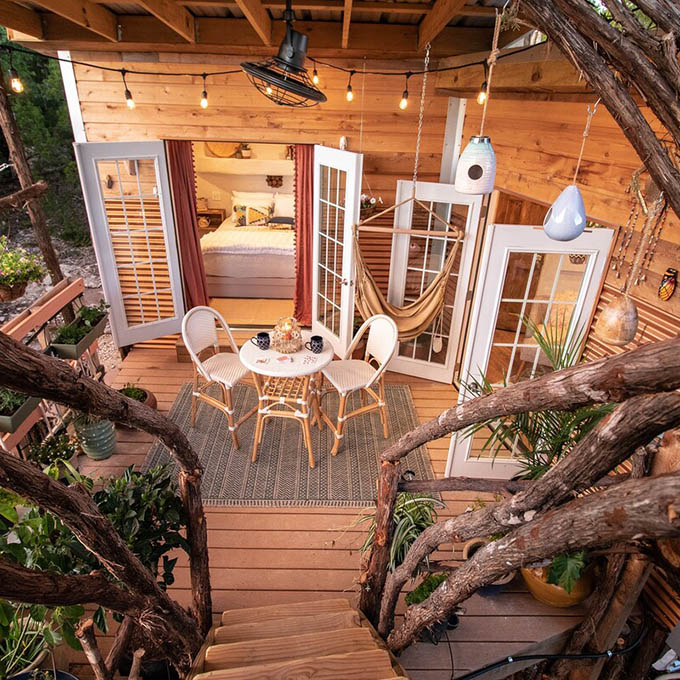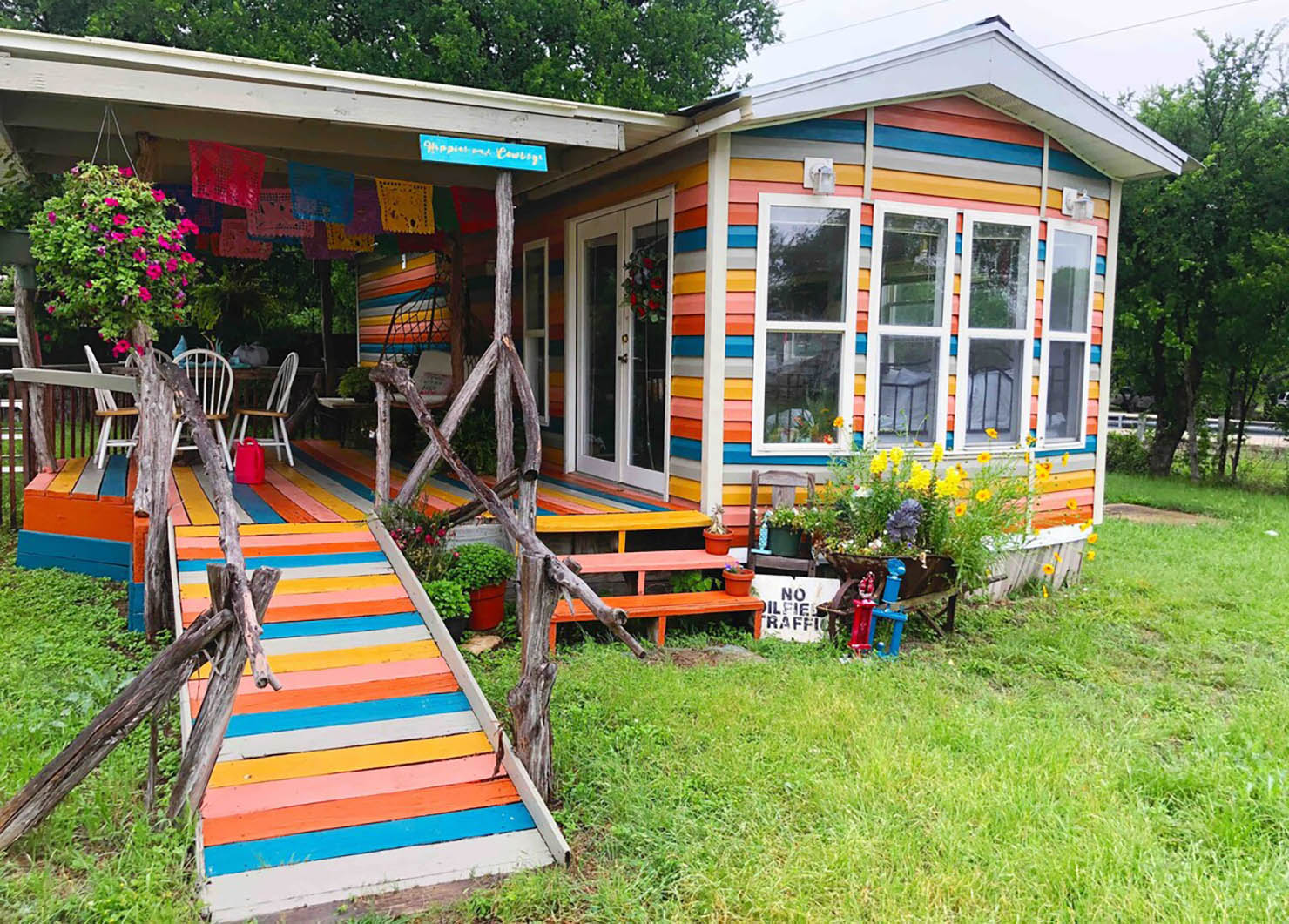 This isn’t your typical minimalist tiny house. This spacious hippie-inspired one-bedroom was made for long, lazy afternoons on the porch sipping lemonade.