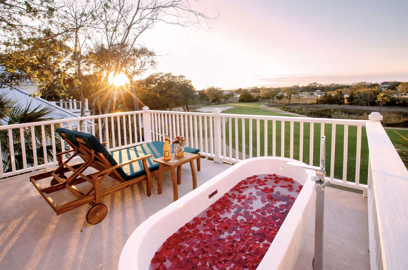 This chic little spot for two has a beautiful view of the golf course from the balcony and is just a short drive to downtown Charleston.
