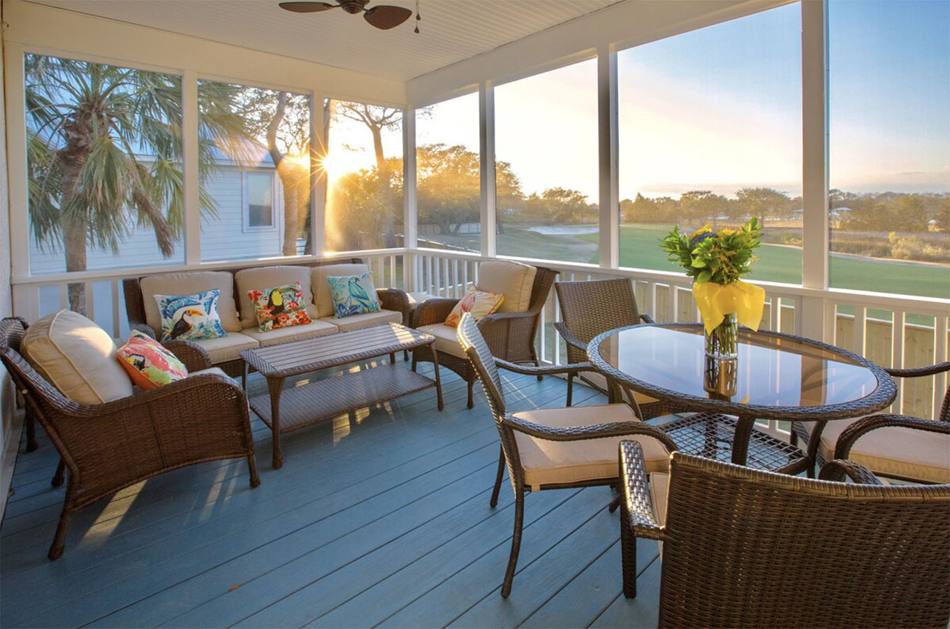 I’m a big fan of all the colorful elements, from the Turkish lamp to the paintings to the Moroccan rugs. Plus, it’s on the gorgeous Wild Dunes golf course and only .5 mile from the beach!