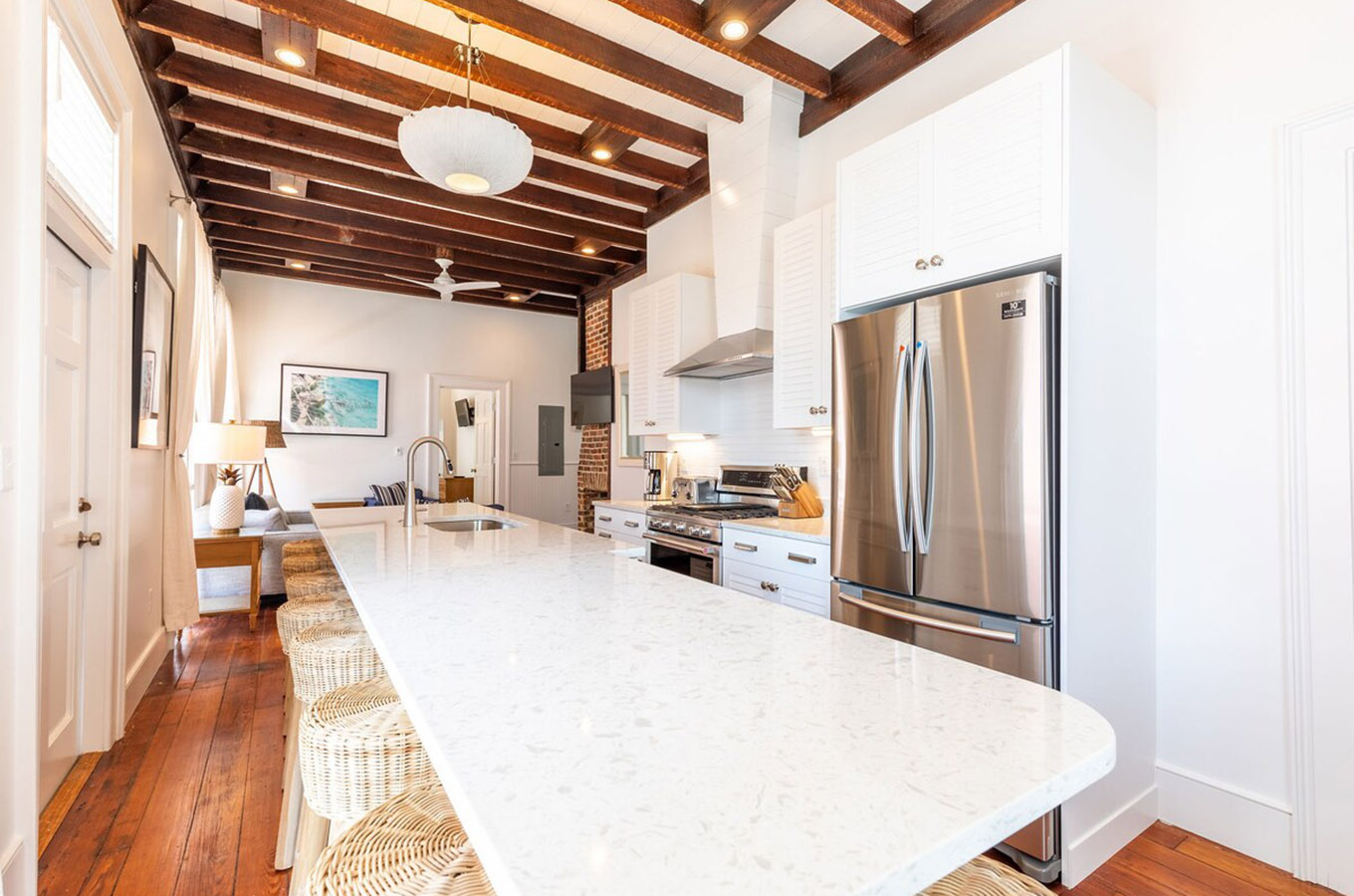 Another perfect pick within walking distance to Upper King Street, this pretty-in-pink little house is ultra-popular with honeymooners. If you’re looking for a romantic spot, you are going to love this adorable home.