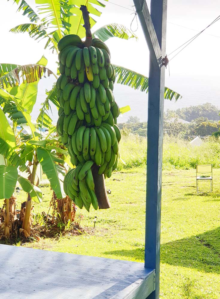 There’s a hanging bed at ground level (talk about dreamy!), and an overall sort of vintage 1970s vibe throughout the property. I’d definitely want to sample the local coffee and snacks provided while hanging out on the wrap-around lanai, which has 360-degree views of the lush jungle!