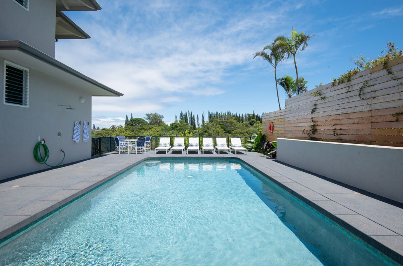 Located in Princeville, the Hanalei Bluff House is a newly remodeled open concept house with a gorgeous private pool. The house is ideal for families or groups of up to six.