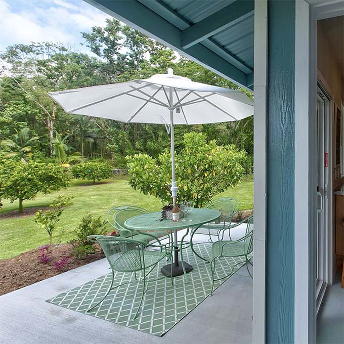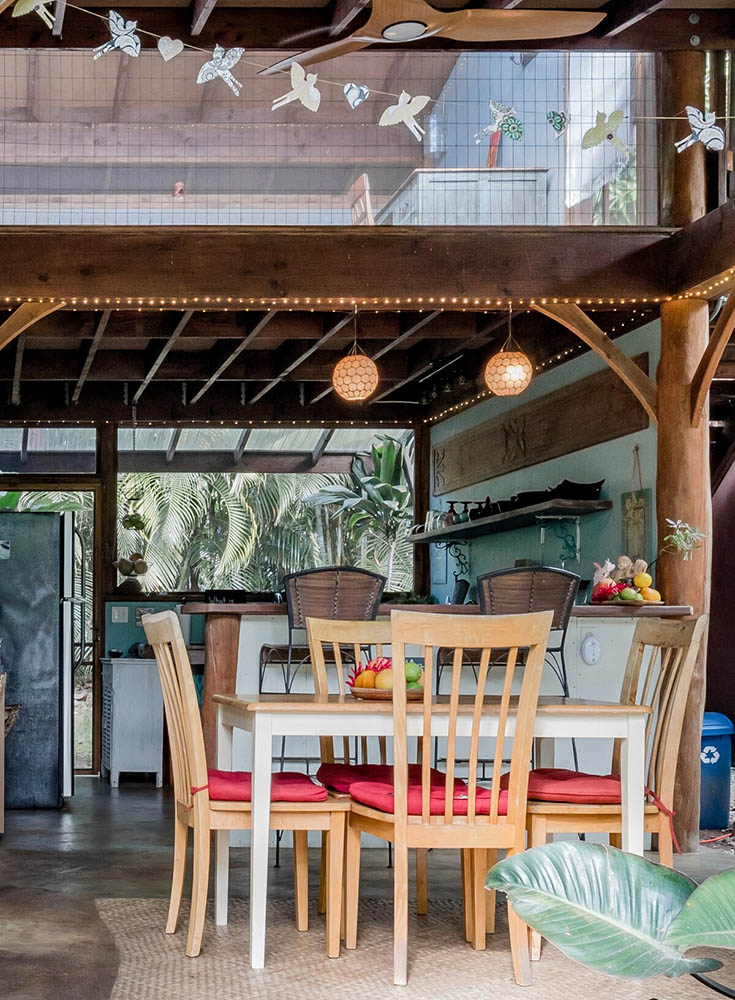 This slice of paradise sits on 1-acre of a tropical orchard with so many fruit trees, orchids, herbs, and bamboo. There’s an indoor bath and shower along with an outdoor bamboo shower (and it doesn’t get better than that, does it?).