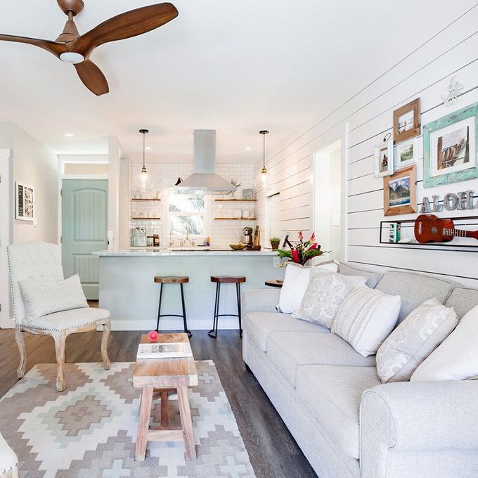 If you love modern style but want to be on the coast, this breezy cottage is the perfect blend of the two! With soft whites and pastel blues this luxurious spot is tranquil and cool. Experience life like a local on Maui as it’s just down the road from Lahaina.