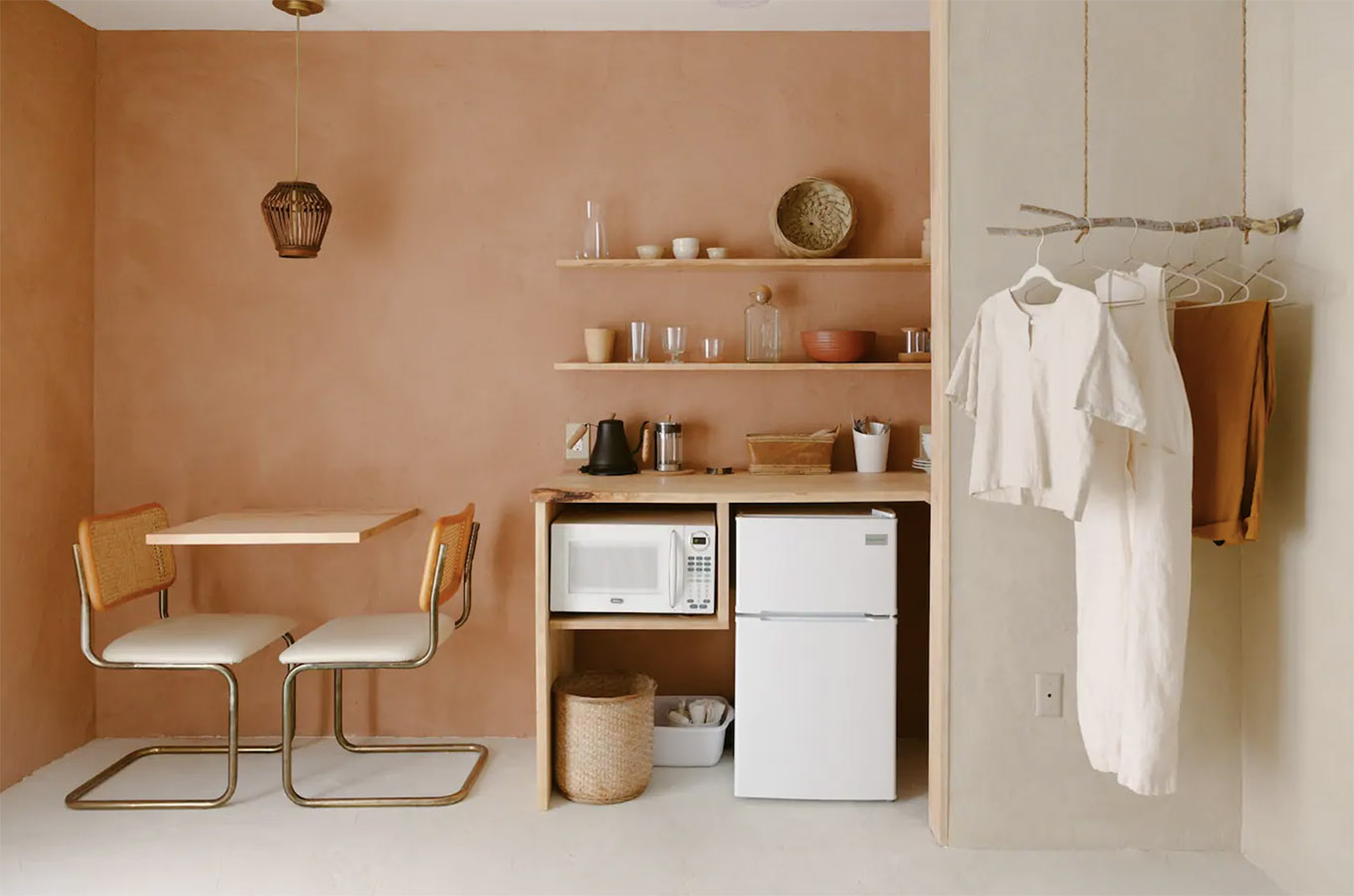 How beautiful are the desert hues of this place? I’m a big fan of all the natural materials, linen bedding, earthen plasters, and hand-built furniture.