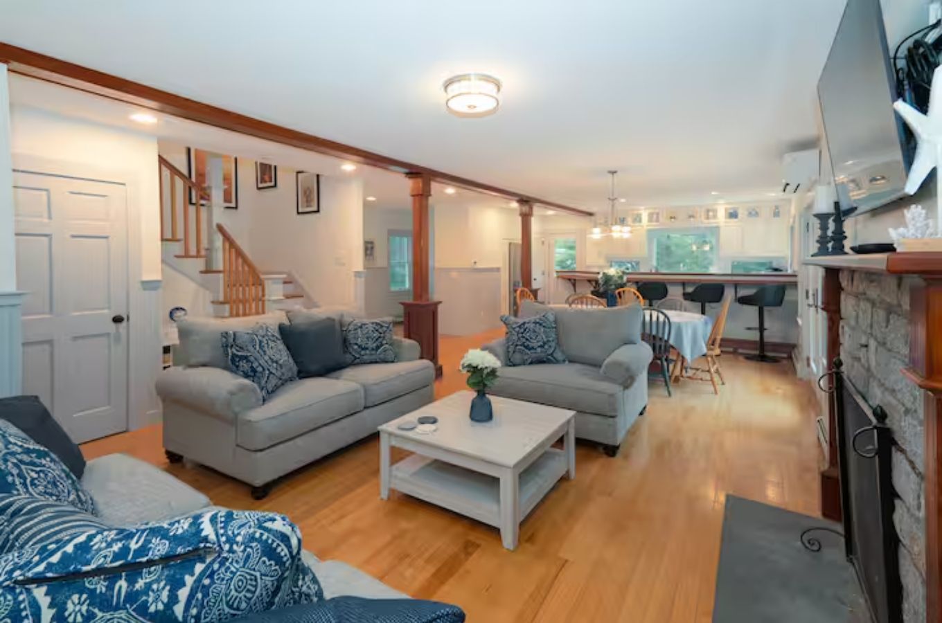 Tucked away on a peaceful one-acre lot in Woods Hole, the home has been newly renovated and makes exploring Falmouth effortless, from beaches and local eats to ferry trips out to the islands.