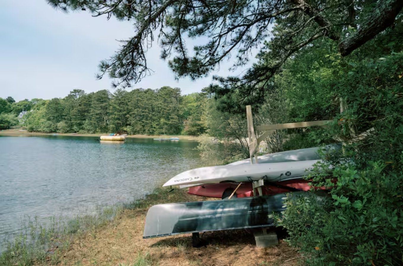 Tucked away on acres of private land, this cottage comes with its own beach, deck, and even an outdoor shower (a true Cape tradition). Spend your days swimming, paddling around White Pond, or biking to nearby beaches and restaurants.