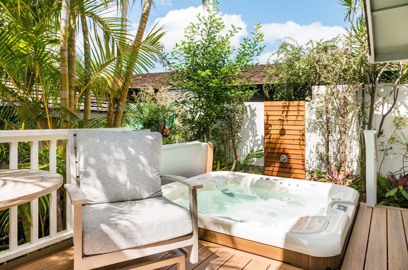 I love the laid-back vibe of this luxury two-bedroom townhouse. When you check into this breezy cottage, you’ll find a private tropical garden with a striking view of the mountains that is perfect for relaxing after a long day out.