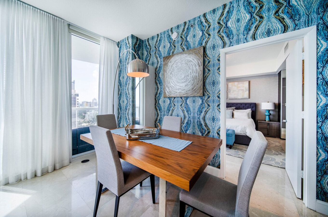 This two-bedroom, two-bathroom spot is perfect for four. It’s located right in the heart of Midtown, which is one of Miami’s most walkable areas. Park your car then explore the best of the city.