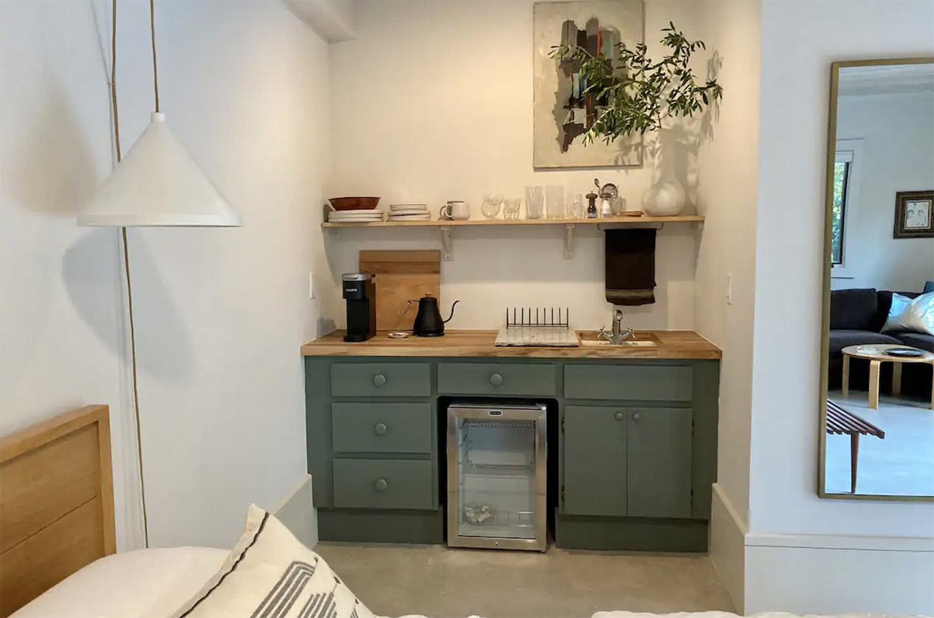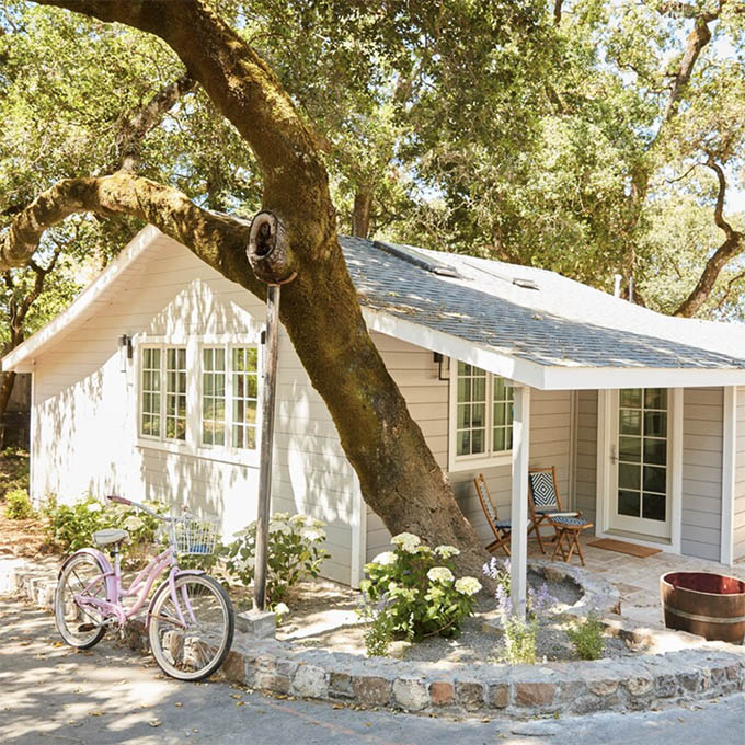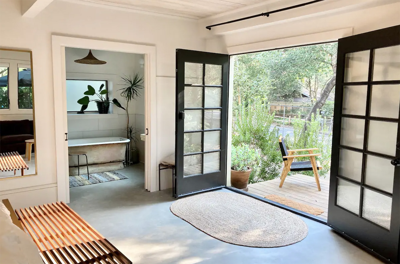 This tiny house packs a whole lot of luxury touches into a small space. Just outside of downtown Sonoma, the lush gardens and vaulted ceilings make it feel like you’ve got way more than 400 square feet.